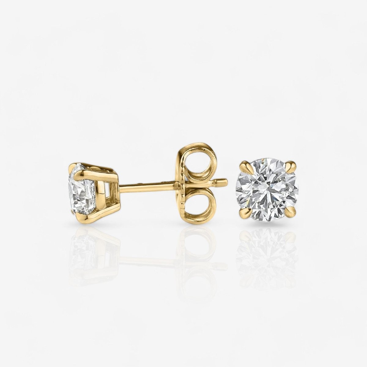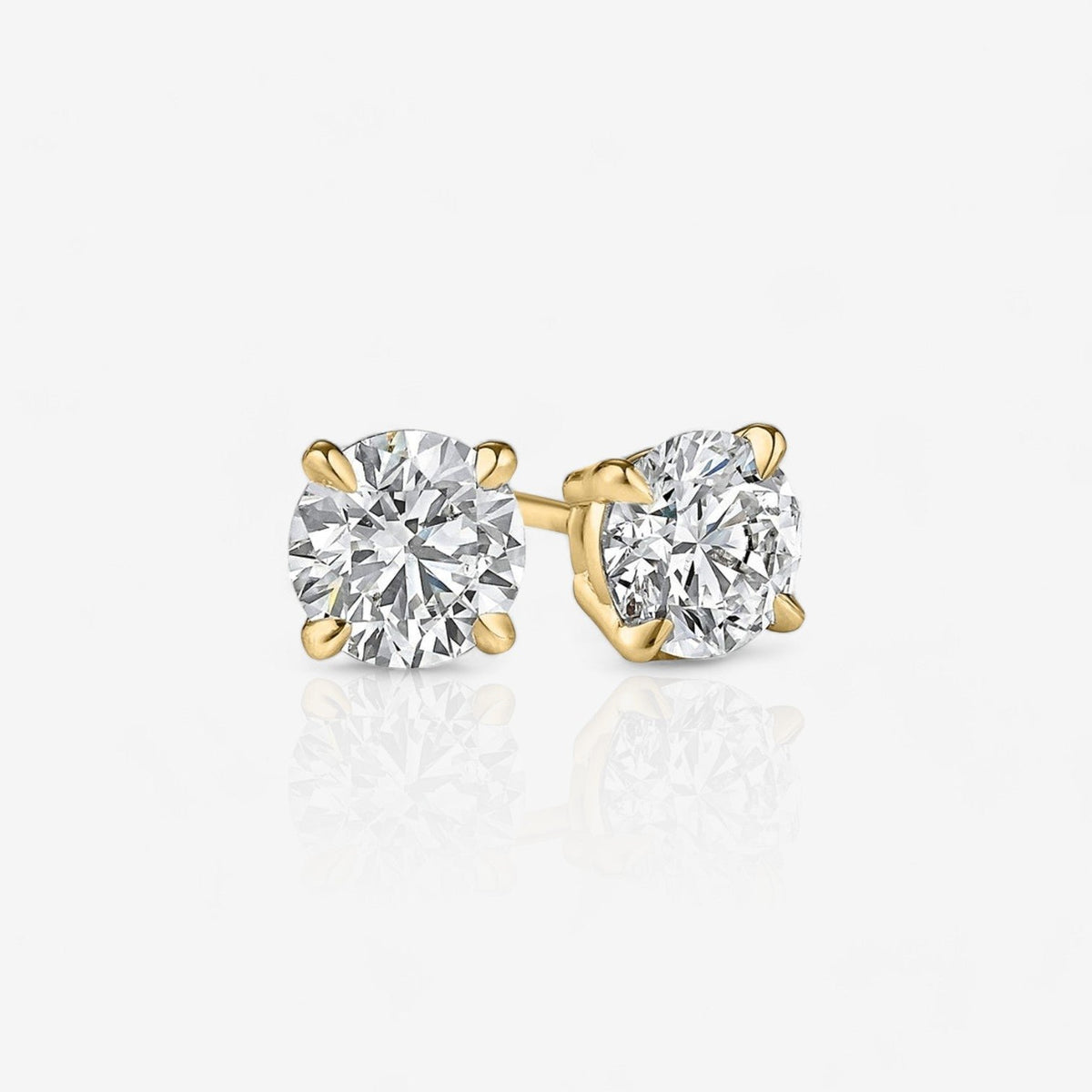 Lab-Grown Round Four Prong Diamond Stud Earrings - 18kt Yellow Gold