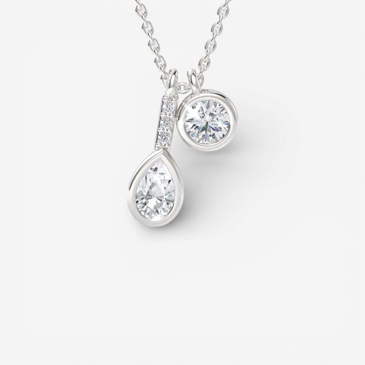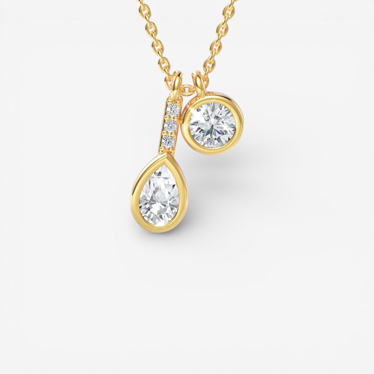 This bezel-set two-stone drop pendant features a round and pear-shaped lab-grown diamond in your choice of 18kt white or yellow gold. An elegant design handcrafted to shine.